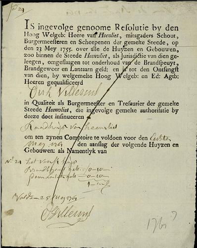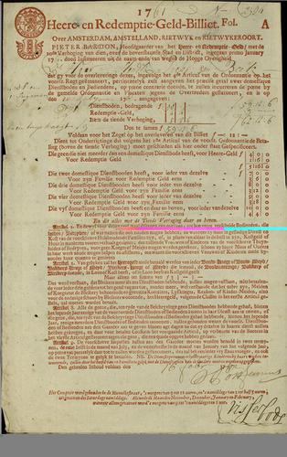 Aanslagbiljet, herengeld, redemptiegeld, 1761