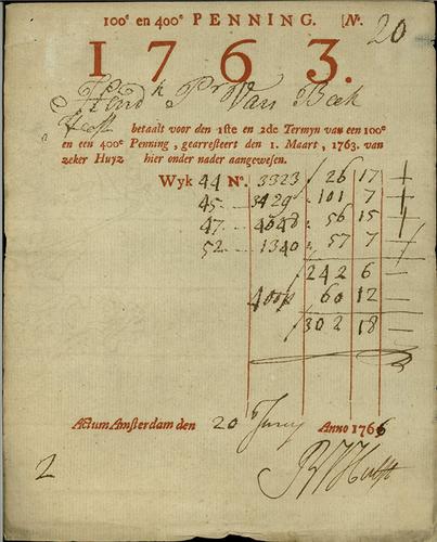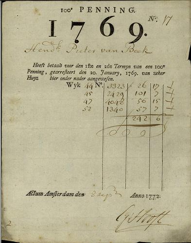 Belastingformulier, 100e penning, 1769