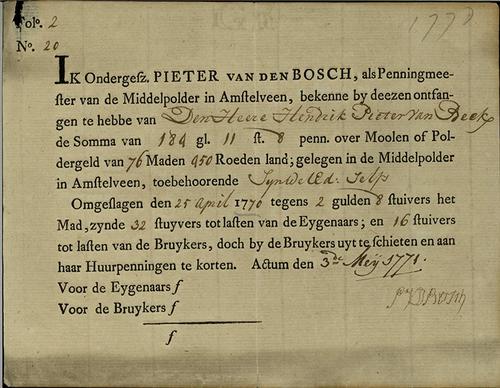 Belastingformulier, poldergeld, 1770
