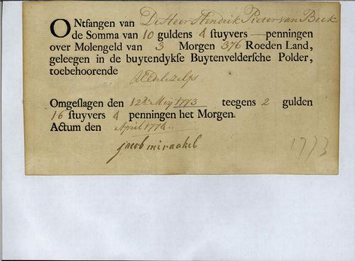 Belastingformulier, poldergeld, 1773