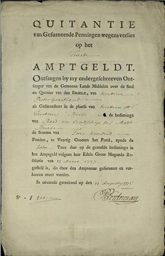 Belastingformulier, ambtgeld, 1775