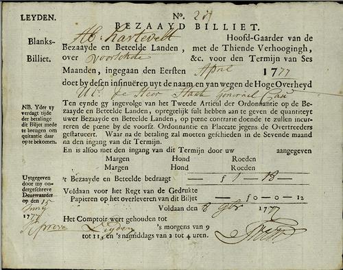 Bezaat billiet, accijns op bezaaide landerijen, 1777