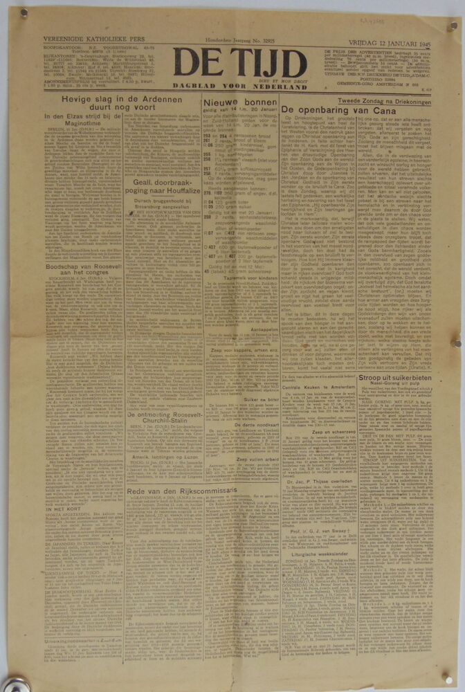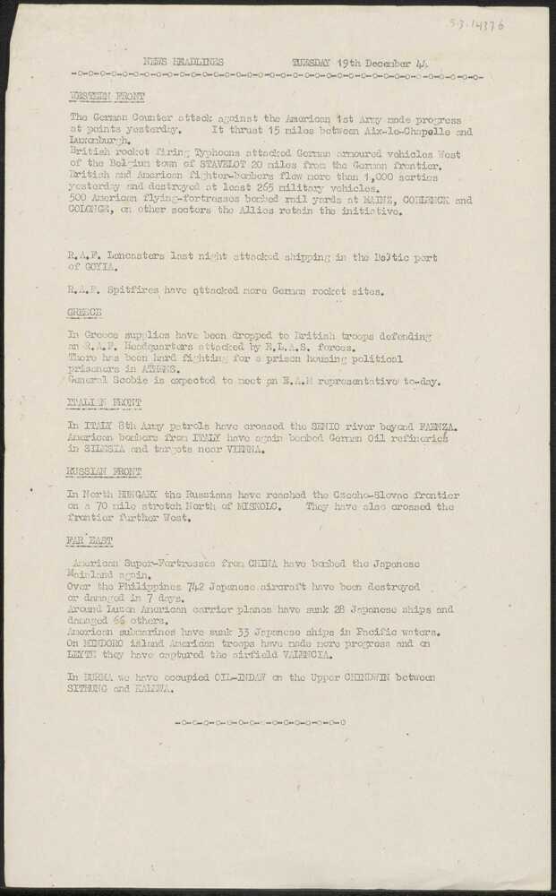 Vel met News Headlines, Tuesday, 19 december 1944