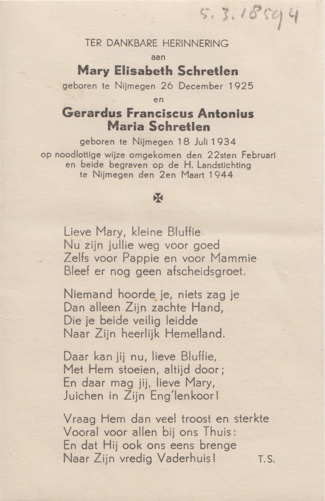 bidprentje M.E. en G.F.A.M. Schretlen