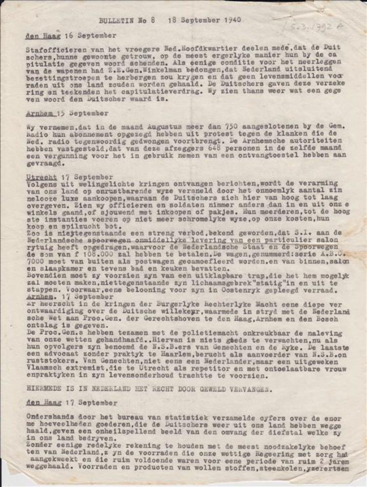 Bulletin No 8 : 18 September 1940.