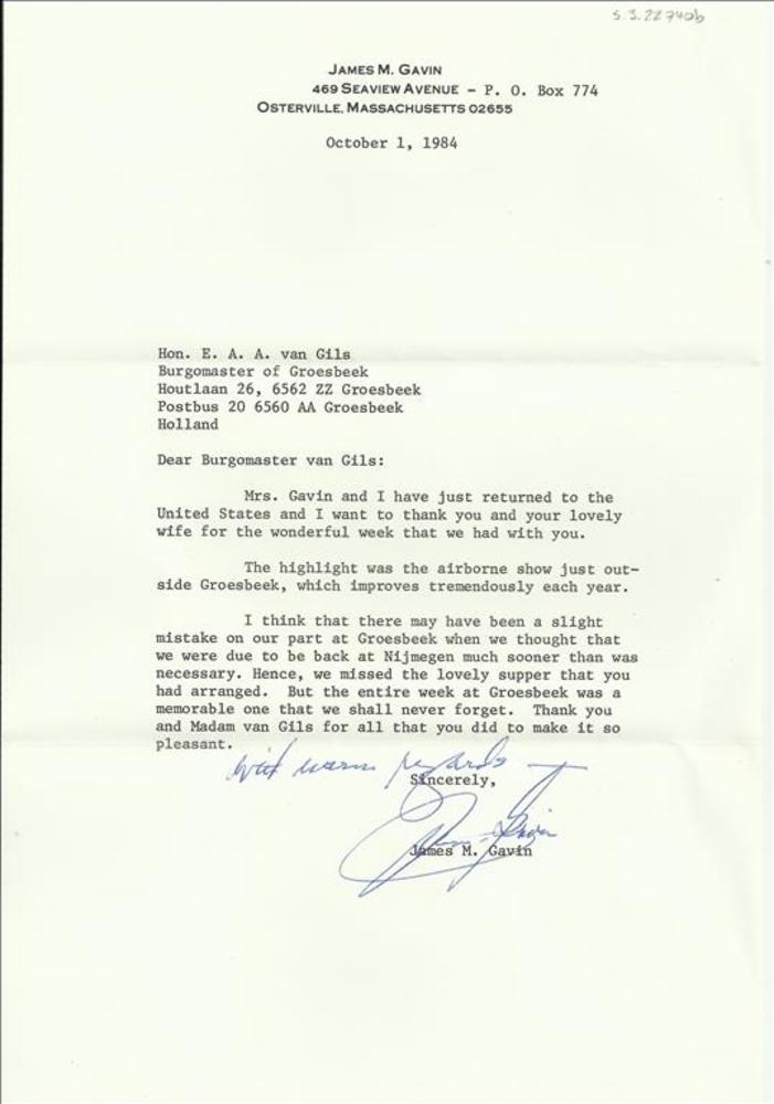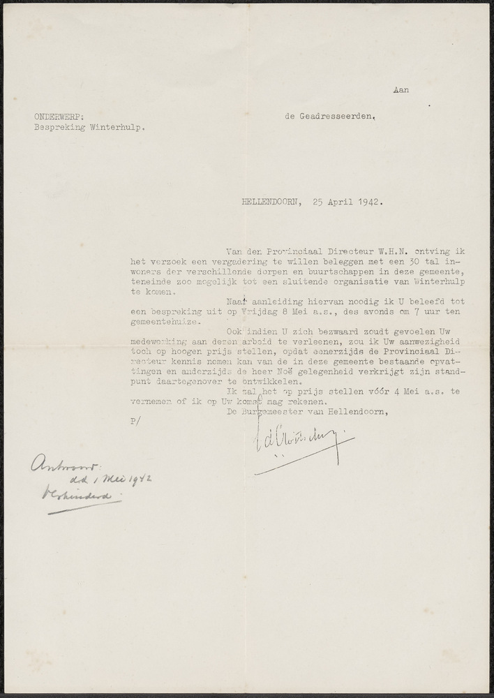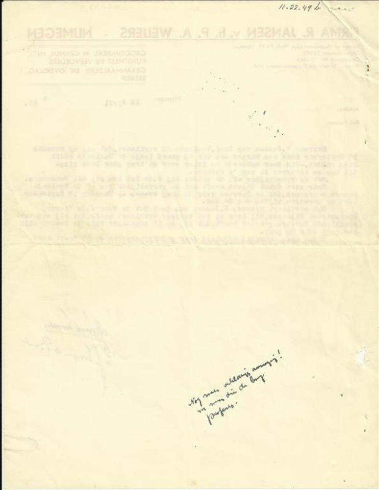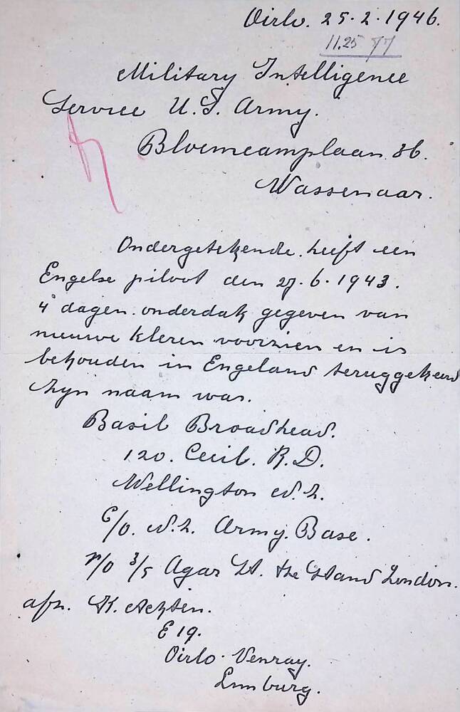 Brief betreffende pilotenhulp, K. Achten, Oirlo Venray