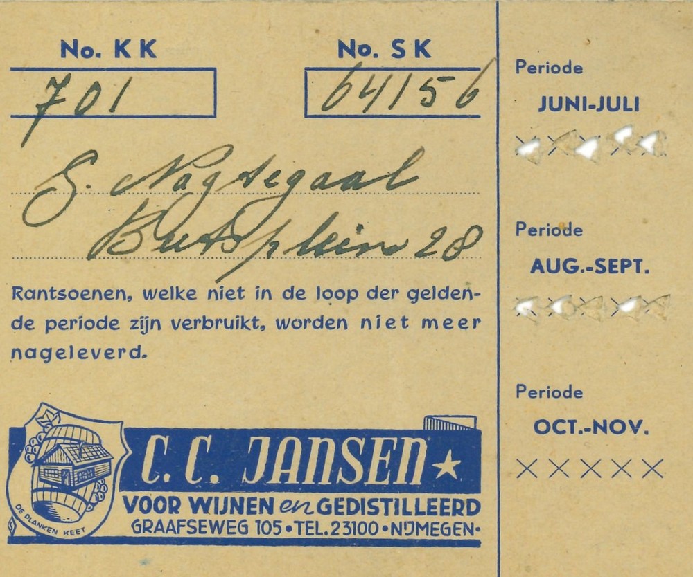 Rantsoenkaart - C.C. Janssen voor Wijnen en Gedistel...