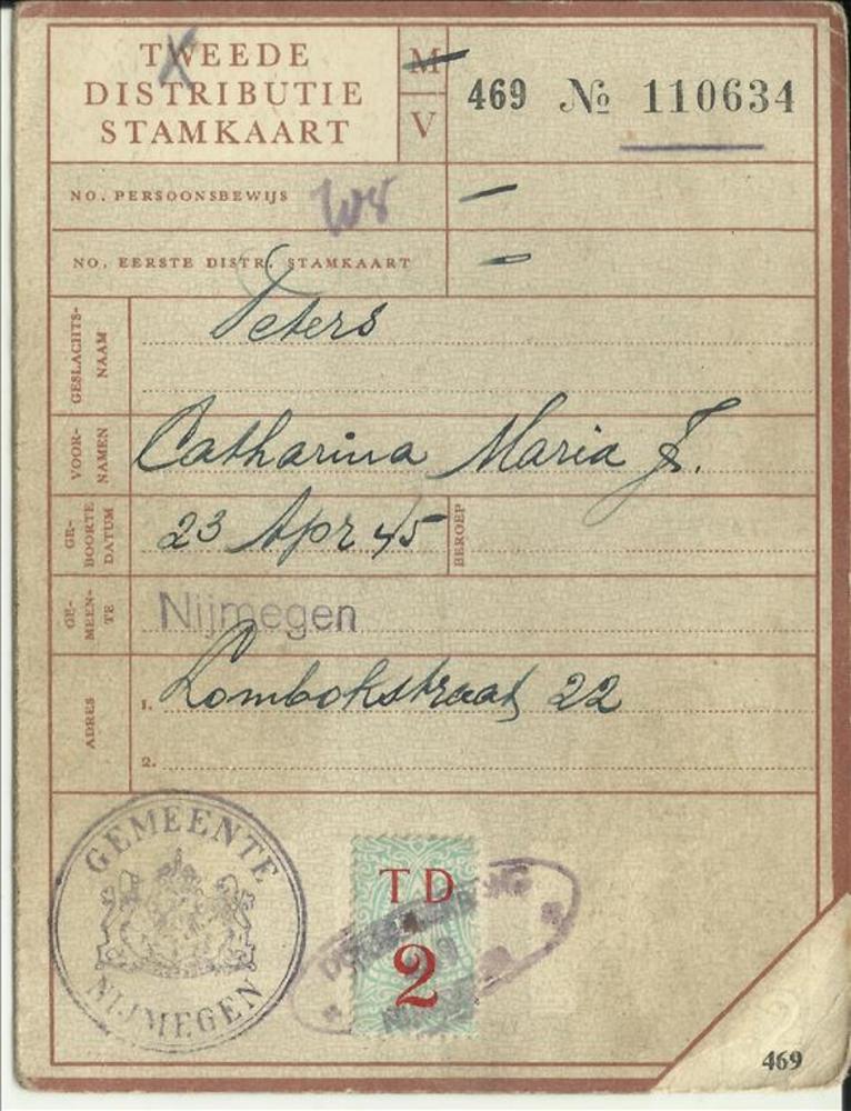 Tweede Distributiestamkaart op naam van C.M. Peters