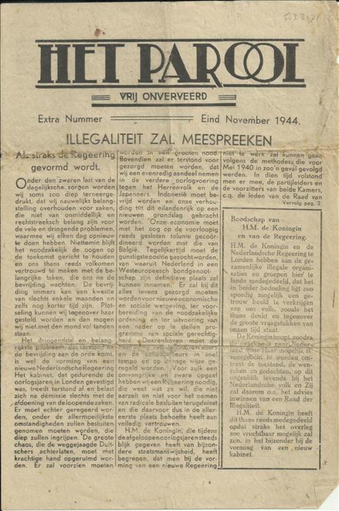 Het Parool, vrij onverveerd, extra nummer, eind Nove...