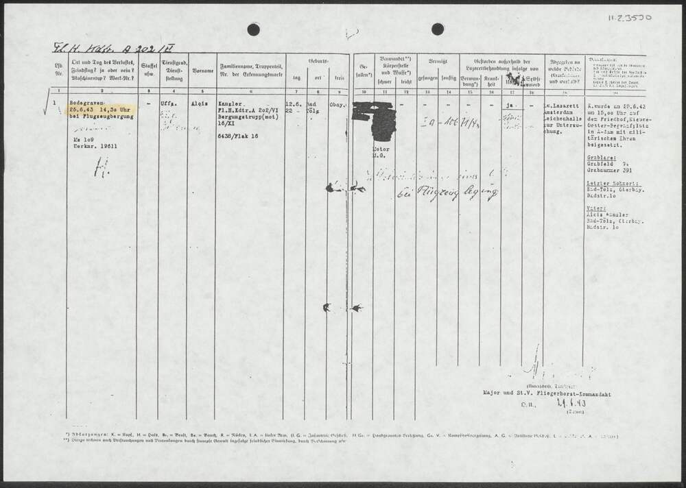 Namentliche Verlustmeldung 25 juni 1943.