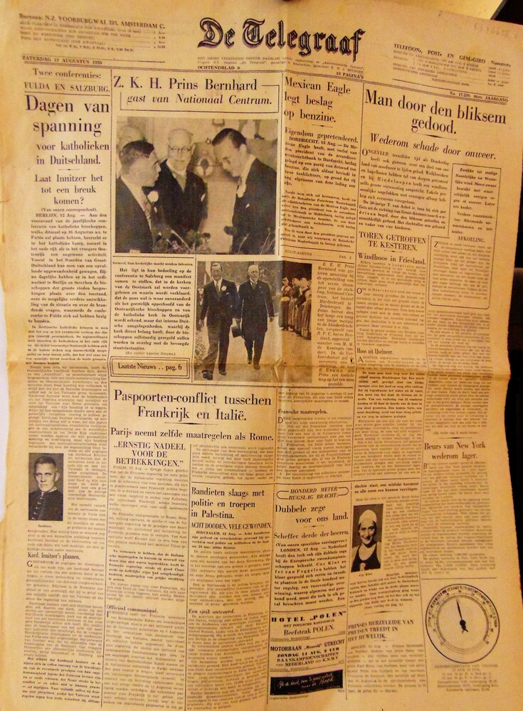 "De Telegraaf" van "Zaterdag 13 augustus 1938" "Ocht...