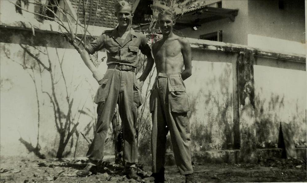 Ned. Indië, Tijgerbataljon: 2 O.V.W.ers voor een muu...