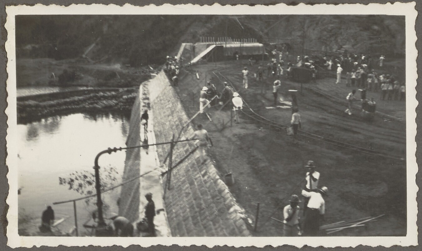 De Javaanse arbeiders zijn bezig met de voetingsmuur...