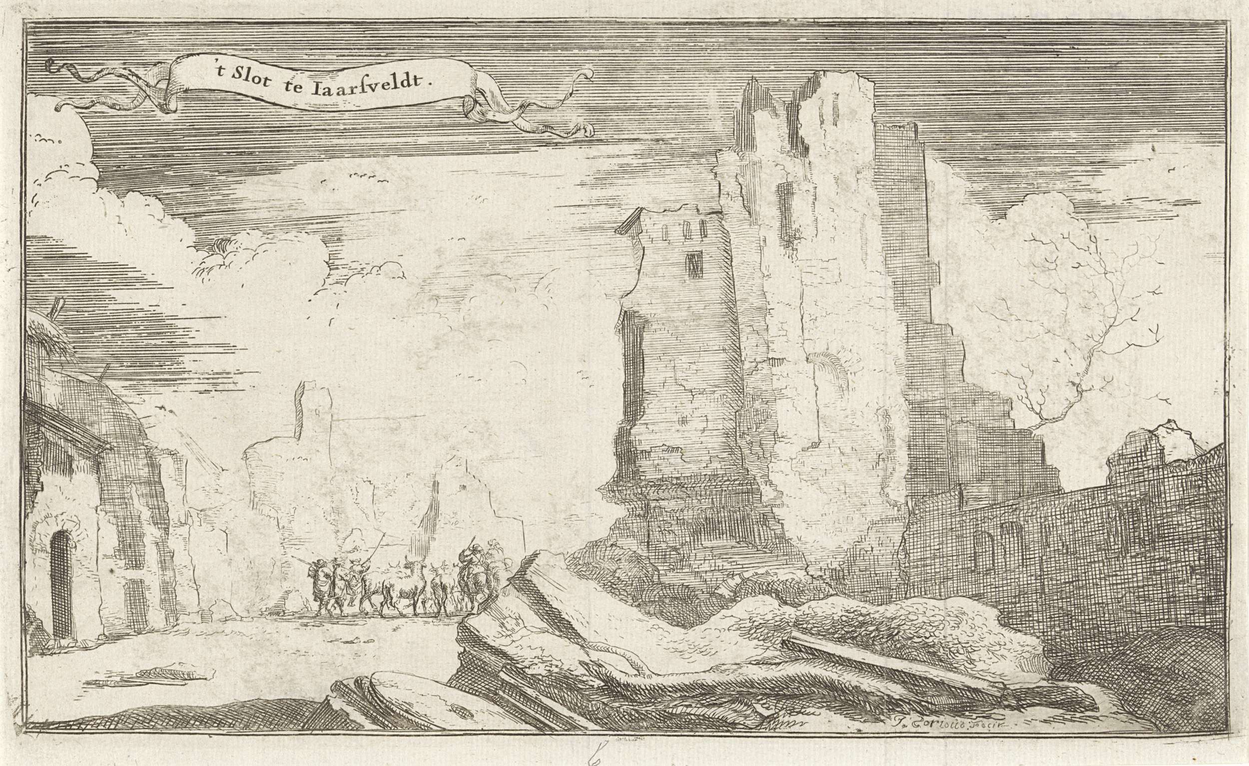 Het slot te Jaarsveld, verwoest door de Fransen in 1672