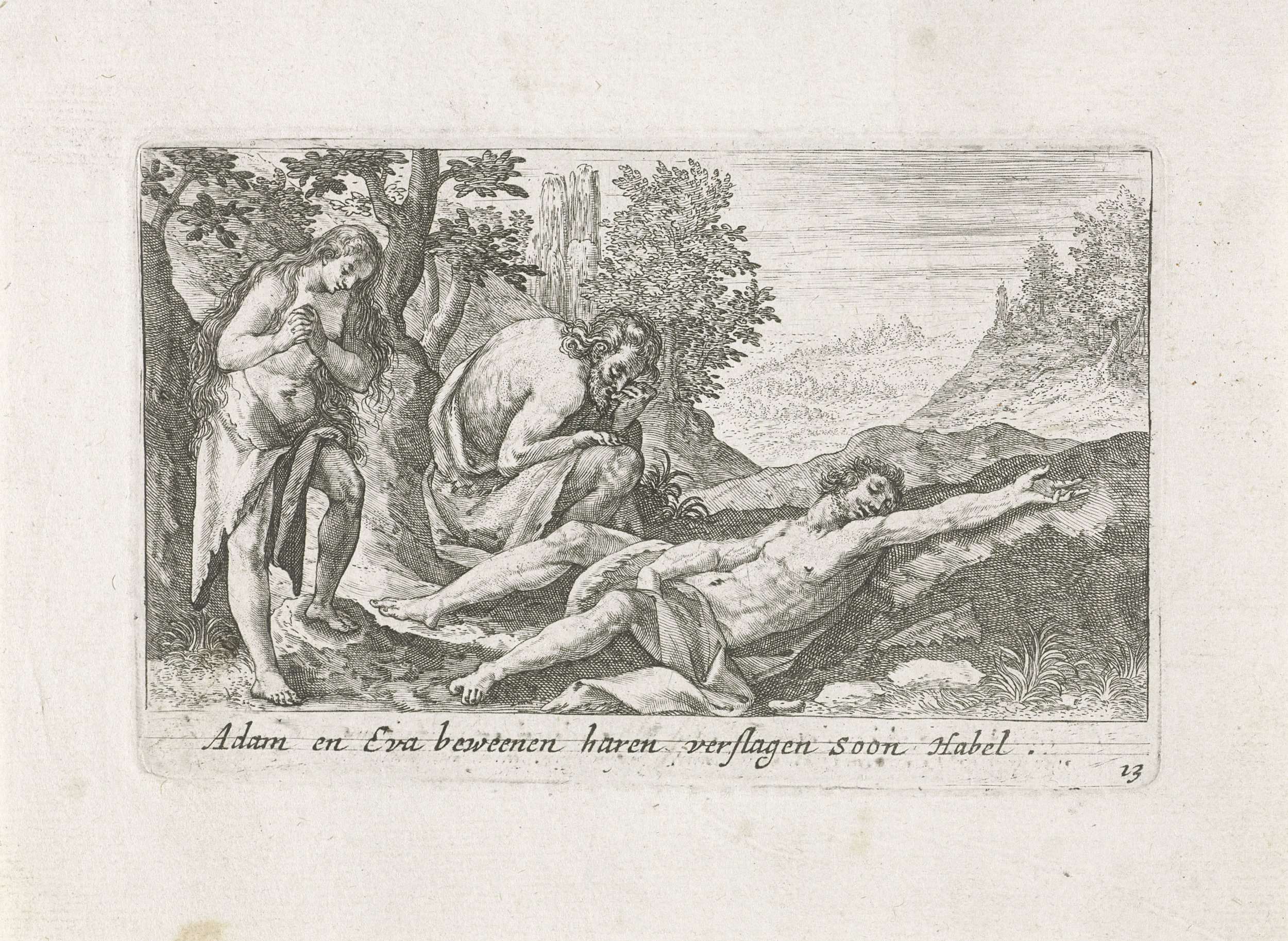 Adam en Eva bewenen de dode Abel