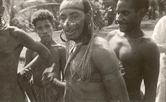Sepik. Man met schild en Pastoor Van Kessel. Cooks