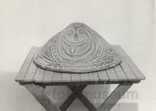 Sagoschaal, beschilderd met mensgezicht, Koywud, Sep...
