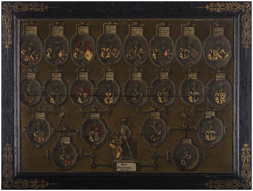 Wapenbord met de zestien kwartieren van Taco van Bur...