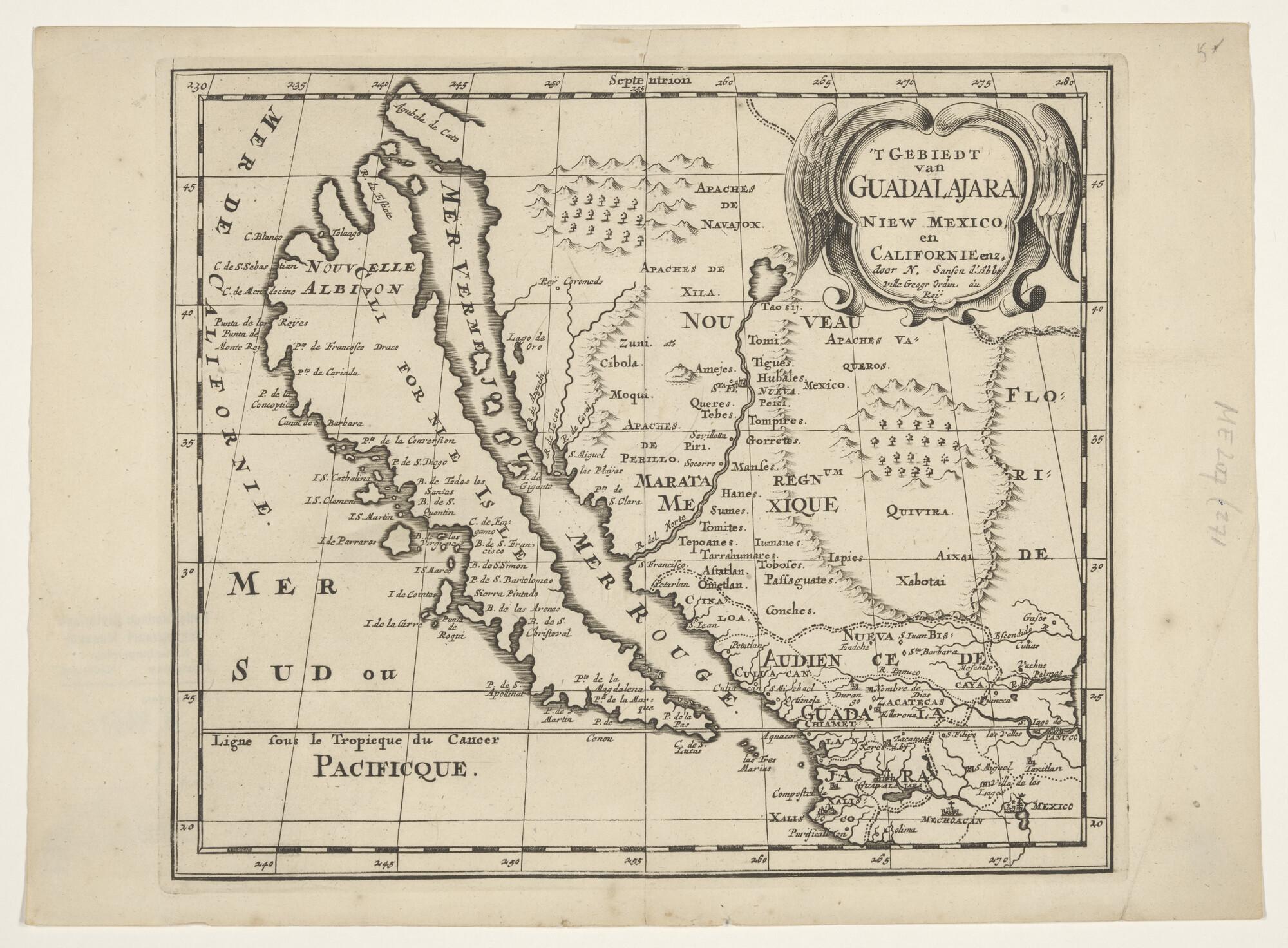Kaart van California en Nieuw Mexico door Nicolas Sa...