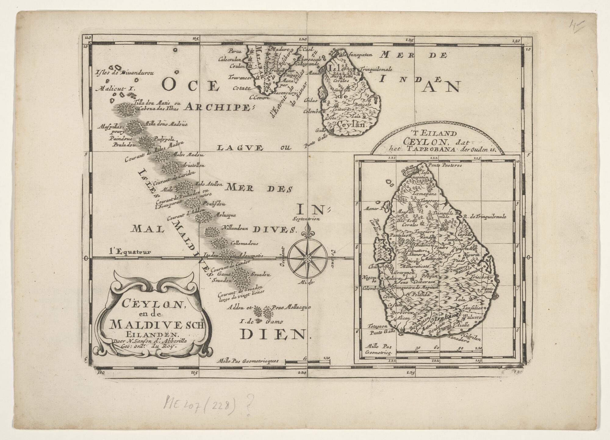 Kaart van Ceylon en de Malediven door Nicolas Sanson...