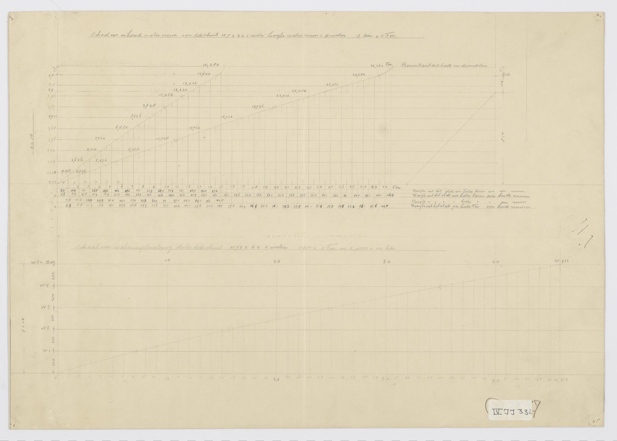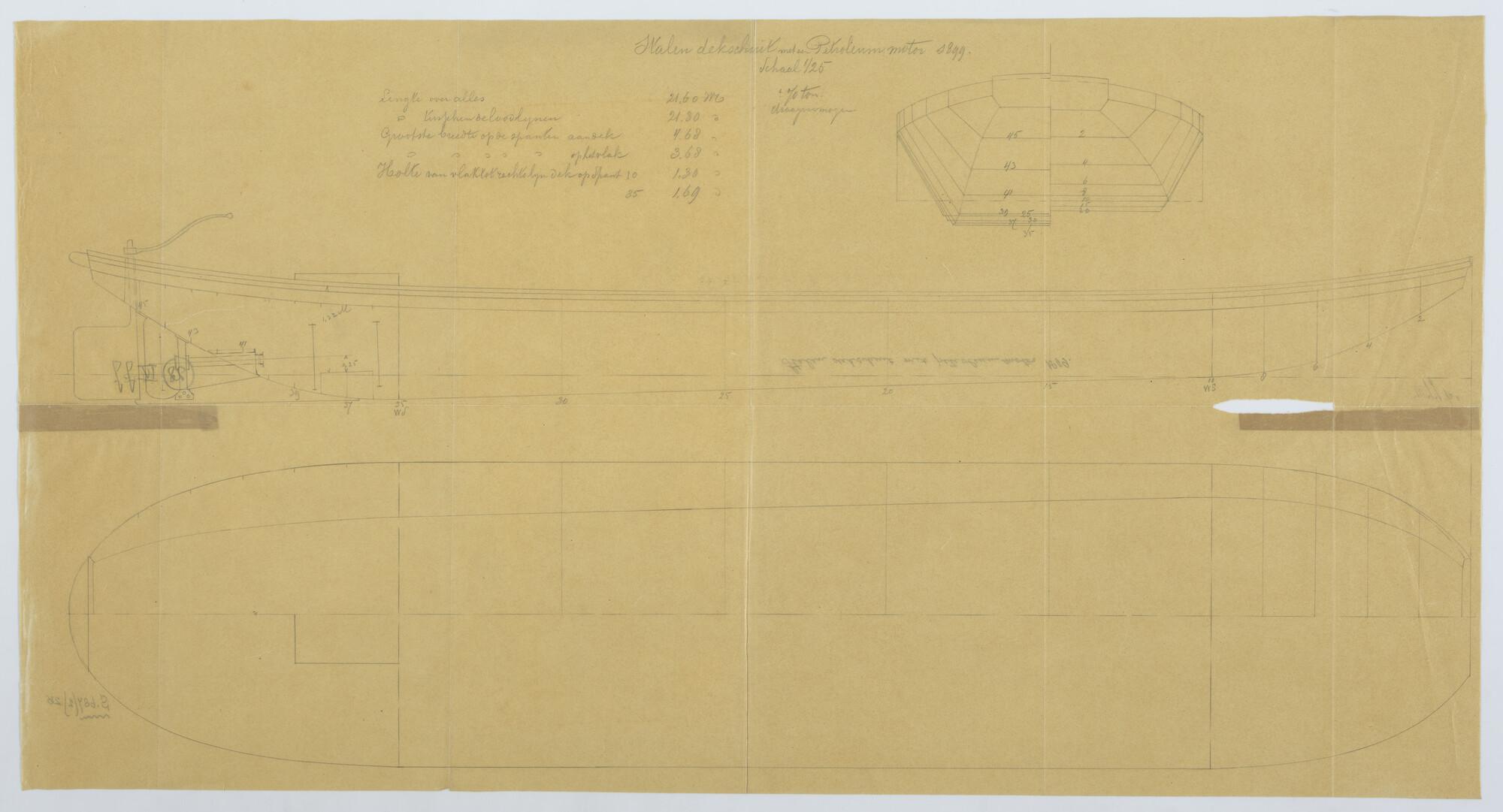 Lijnenplan van een stalen dekschuit met petroleum motor