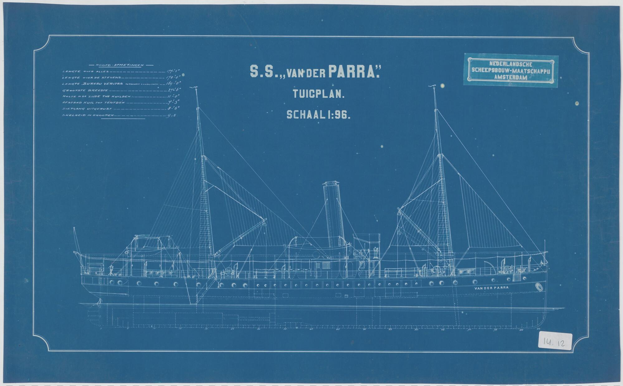Tuigplan van het vracht- en passagiersschip Van der ...