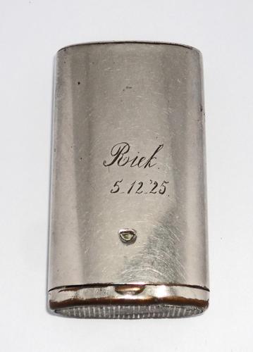 Luciferdoos. Ovalen, langwerpige metalen lucifersd...