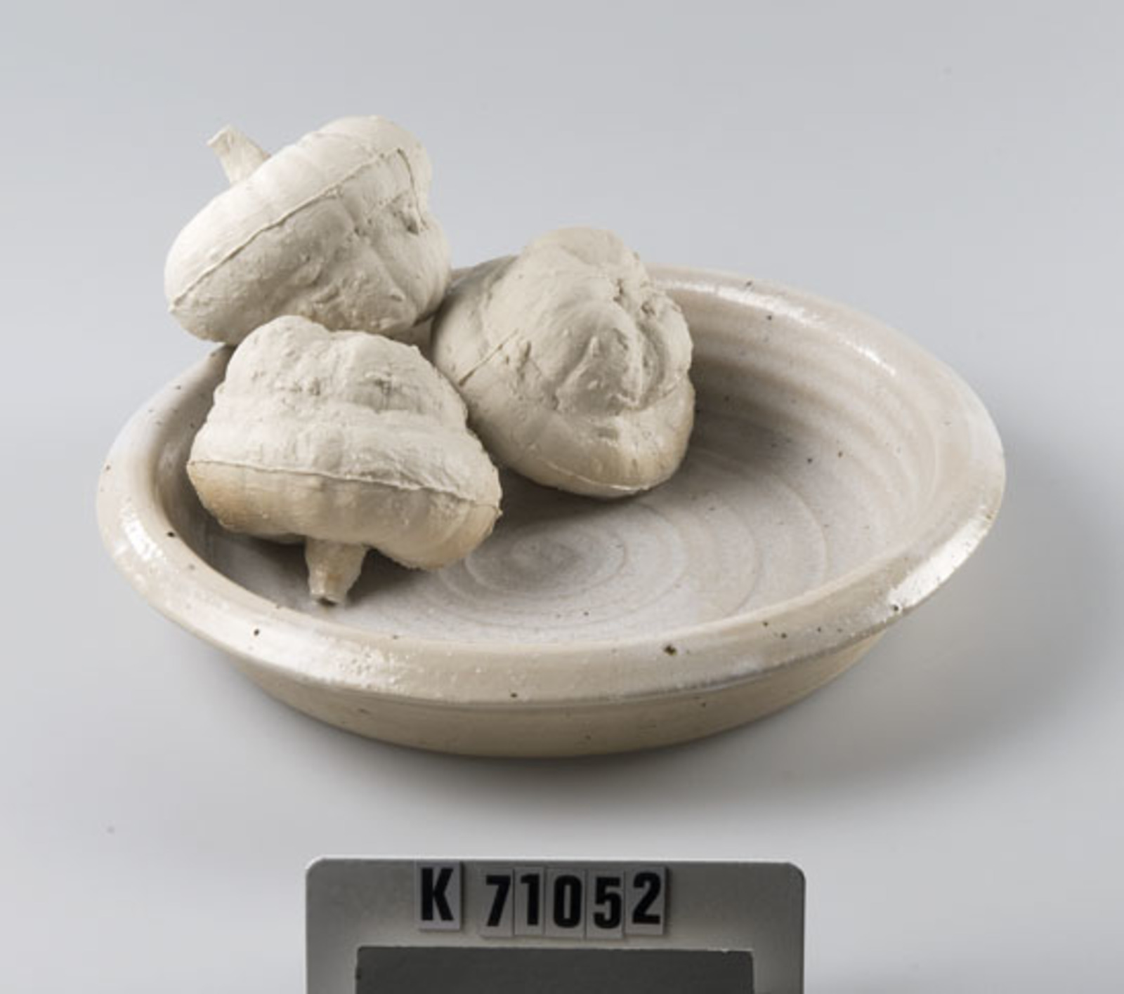 Schaal met zwart-bruin asglazuur en gepenseeld ornament