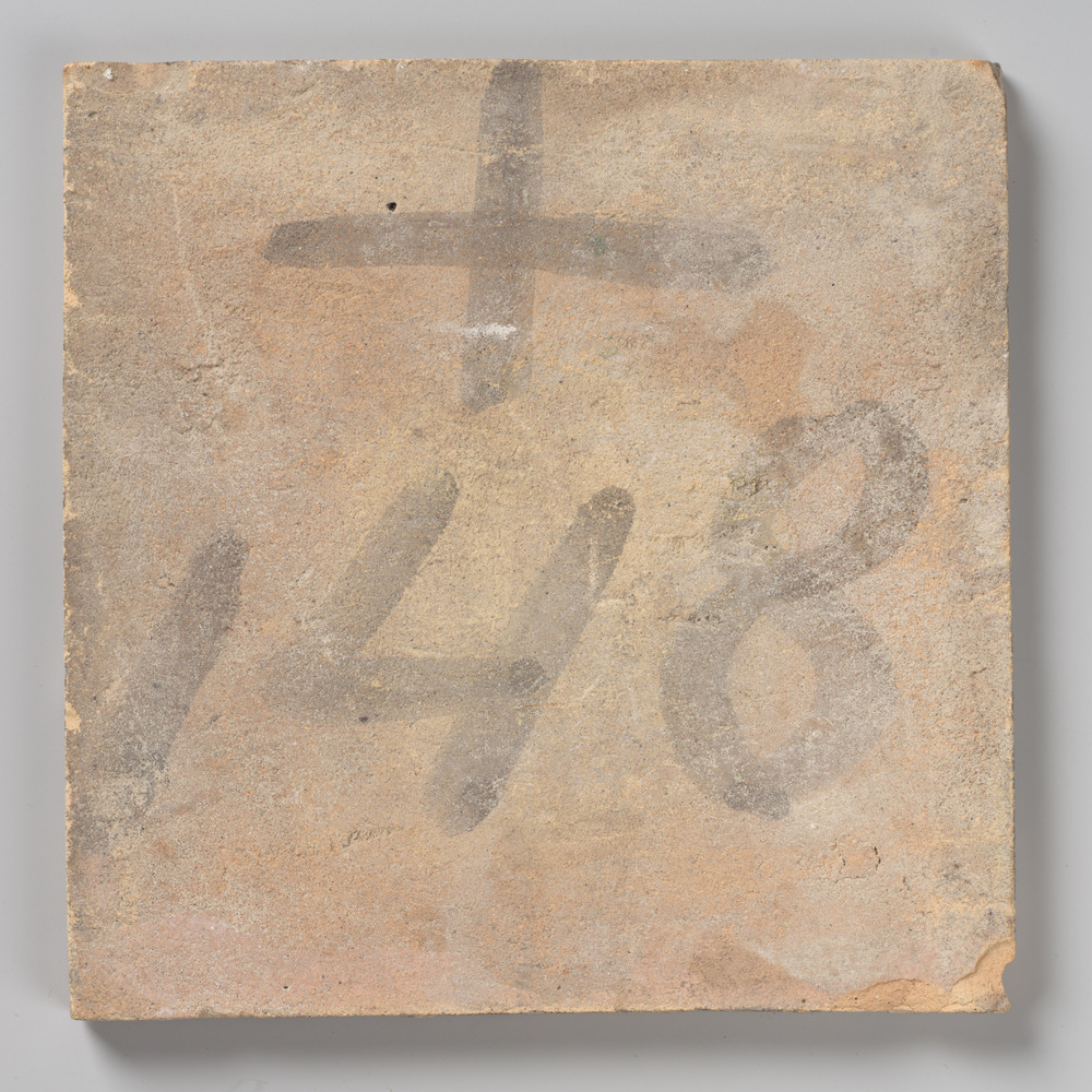 Tegel van keramiek met tinglazuur, voorstellende: or...
