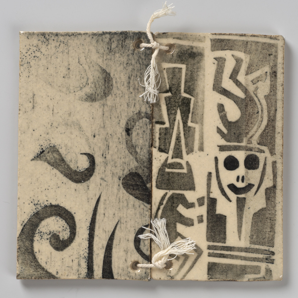 tegeltableau van twee tegels in de vorm van een boek...