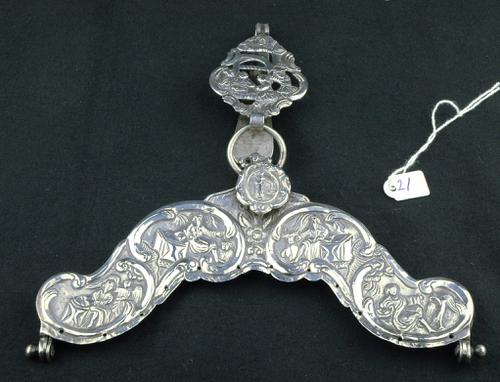 Chatelaine met schaar, speldenkussen en naaldenkoker...
