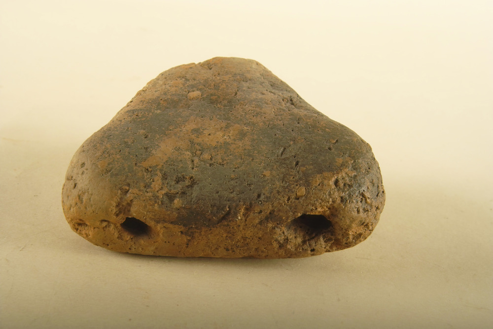 Katrolblok van handgevormd aardewerk voor een weefto...