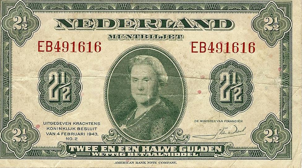 Geldbiljet van 2,5 gulden, 1943, Nederland