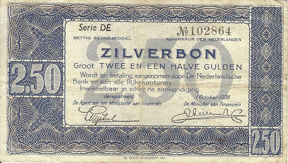Zilverbon van 2,5 gulden, 1938, Nederland