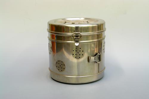 Sterilisatietrommel met perforaties in bodem en deks...