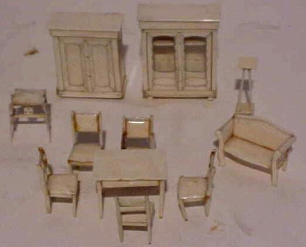 poppenameublement. Kast, tafel, stoelen. theeblad en...