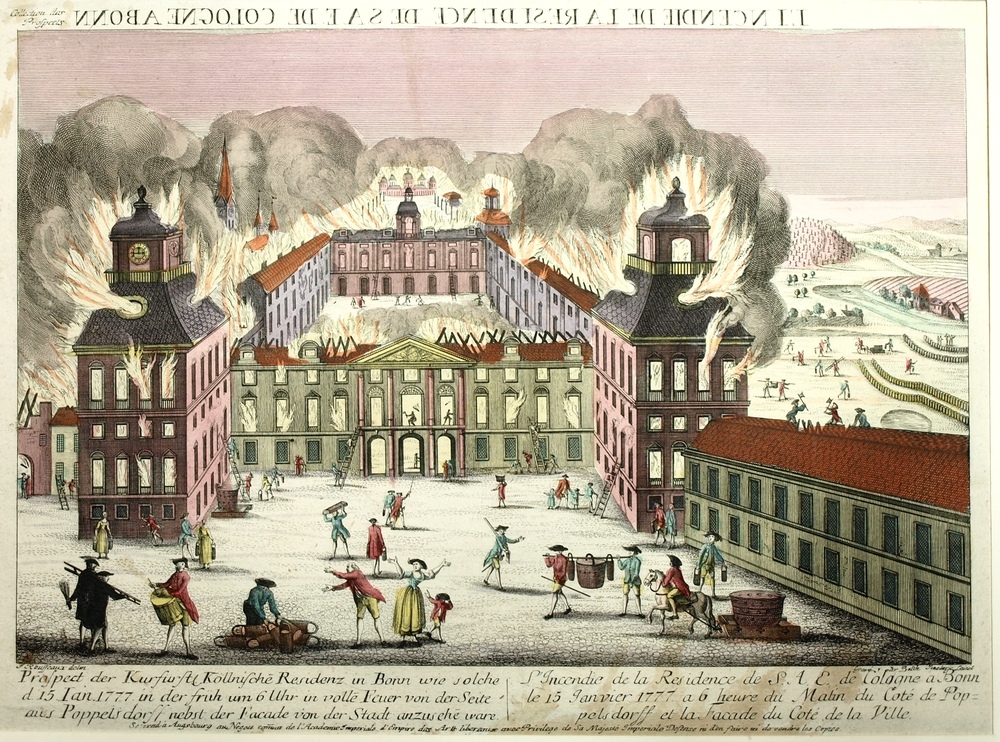 Opticaprent, gezicht op de brand in het Paleis te Bo...