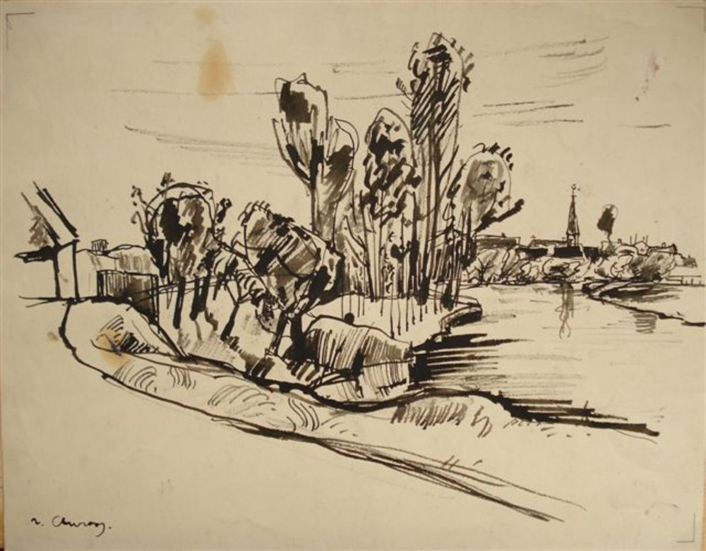 aquarel, dorpsgezicht , Jan van Anrooy