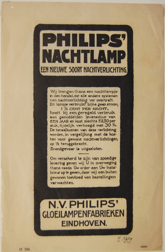 Reclame plaat van Philips ca 1920