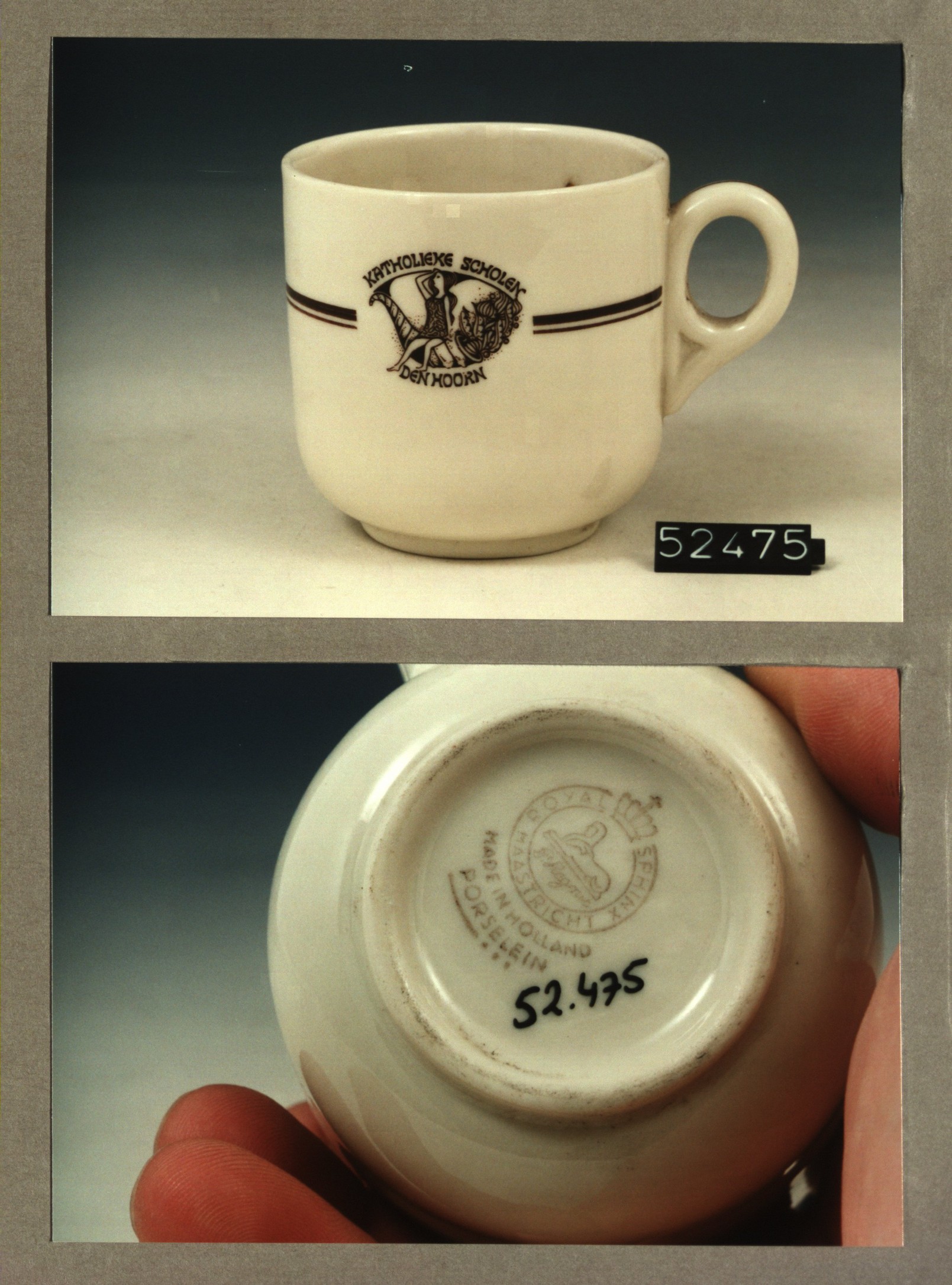 Kop met opschrift, model F2 met decor Katholieke sch...