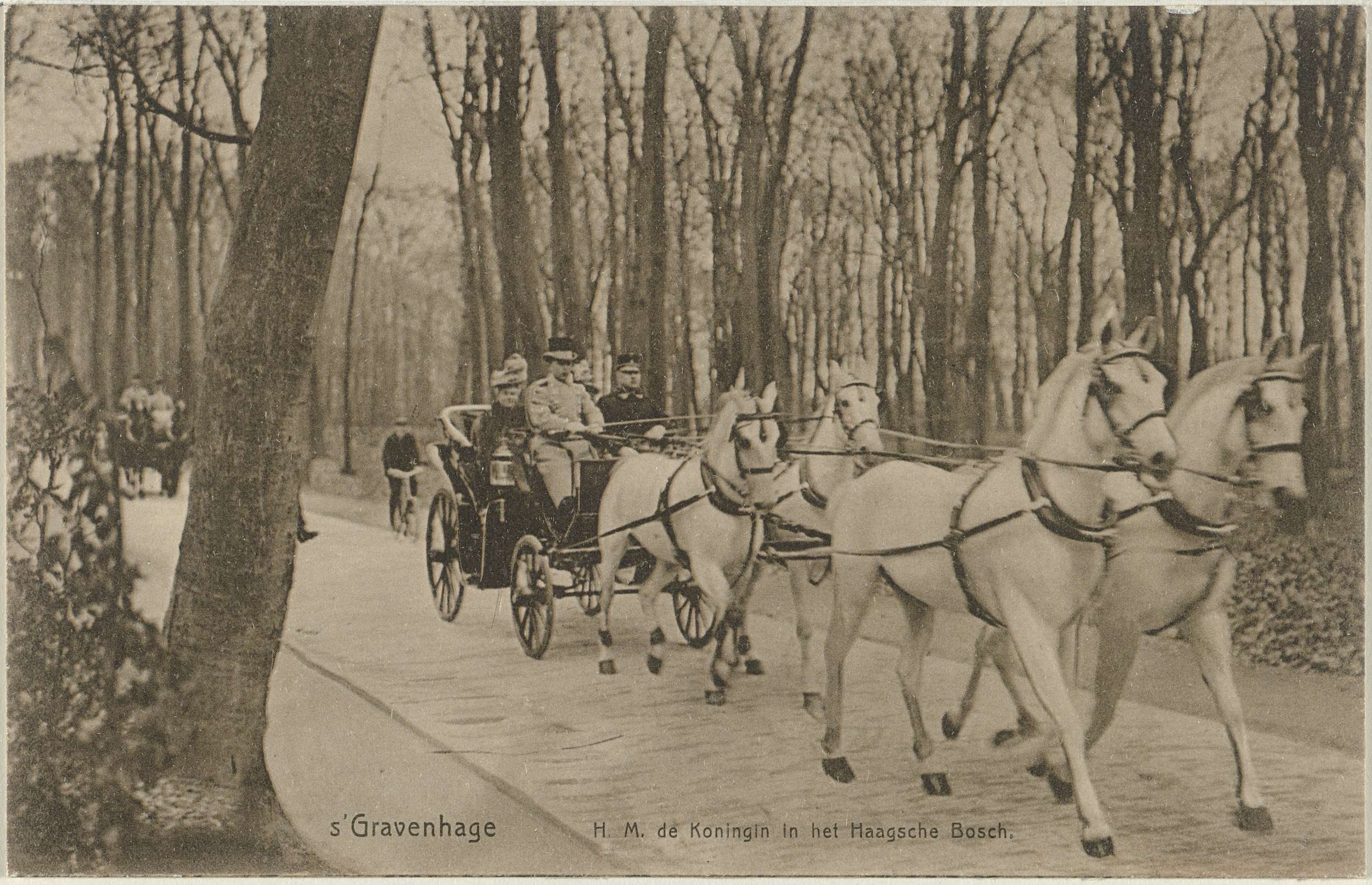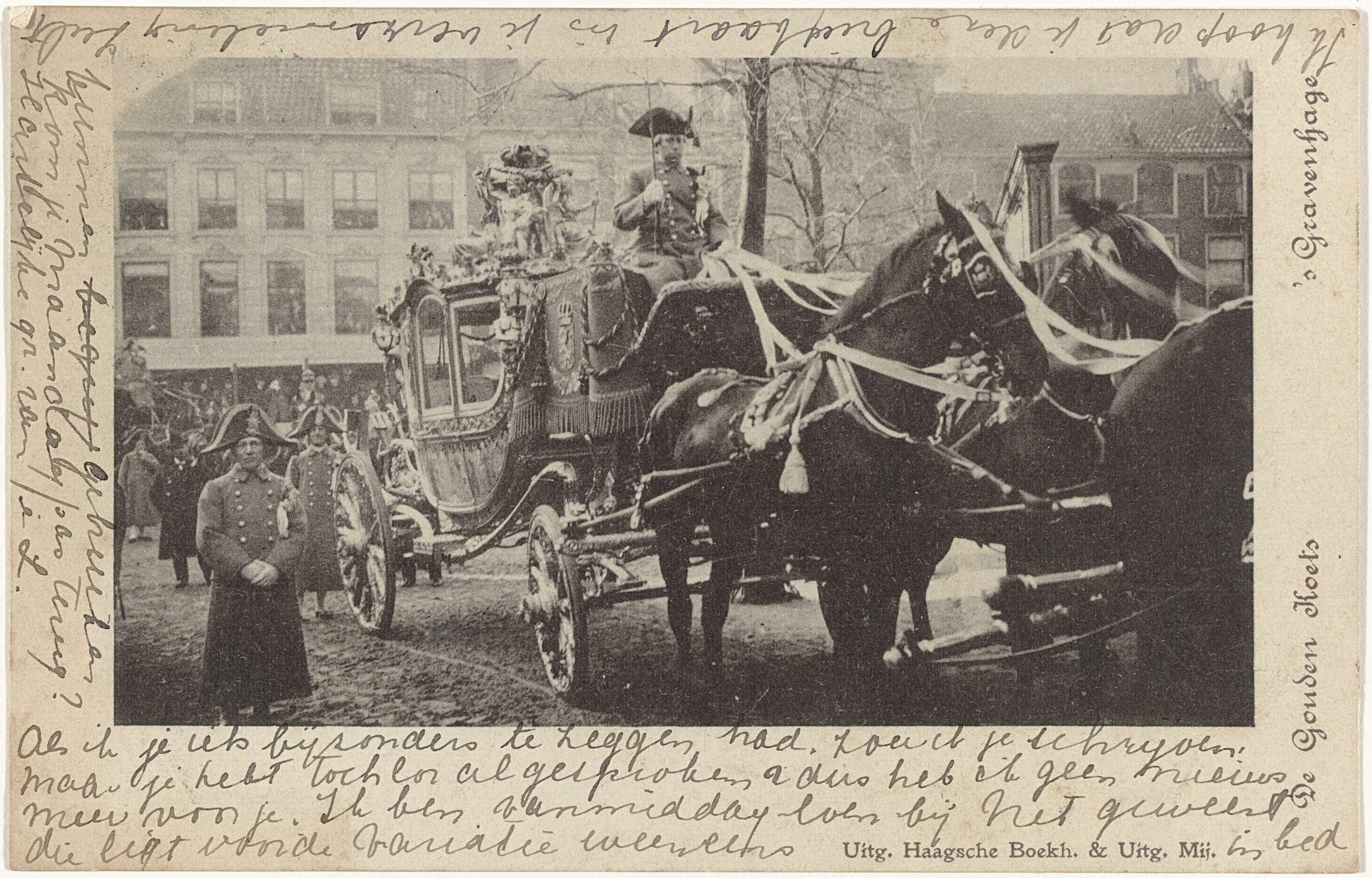 De gouden koets van de huwelijksstoet van Wilhelmina...