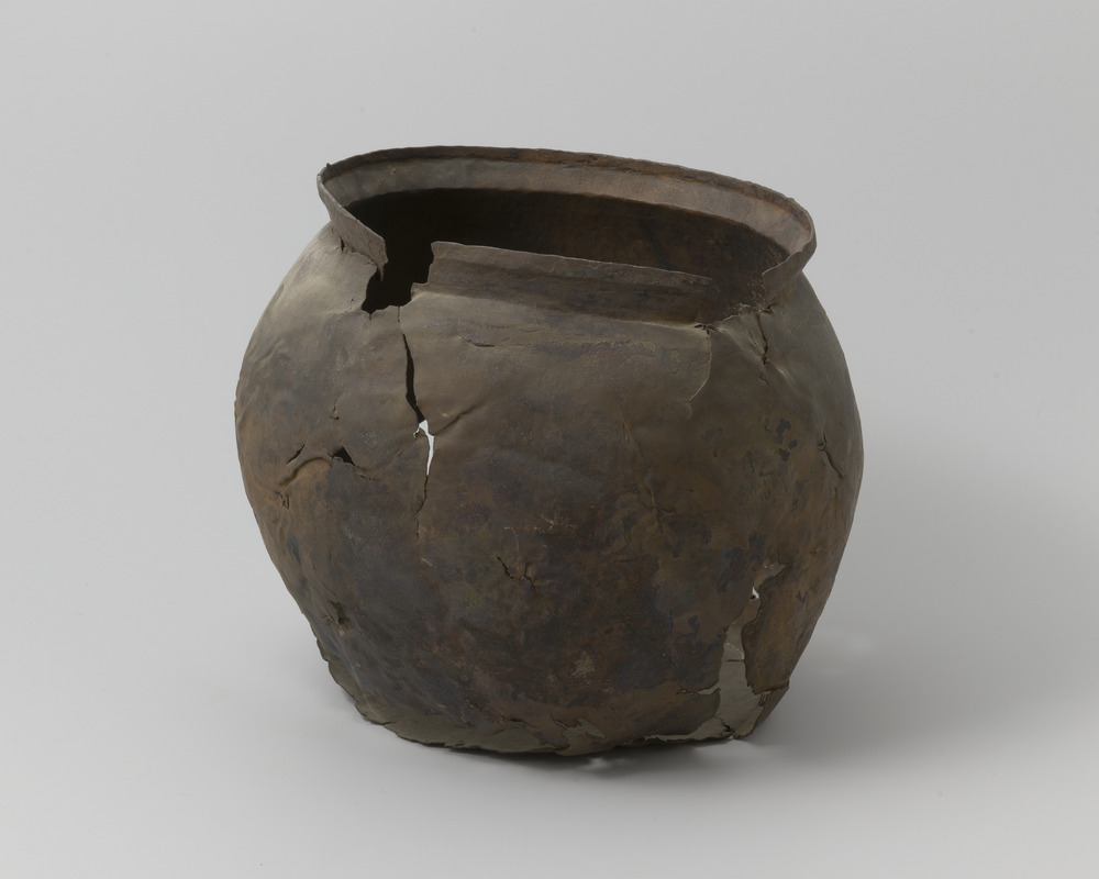 Pot van handgevormd ruwwandig aardewerk
