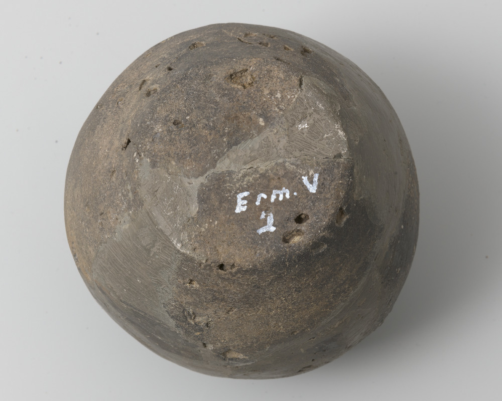 Kruik bol met deksel fragment op oor