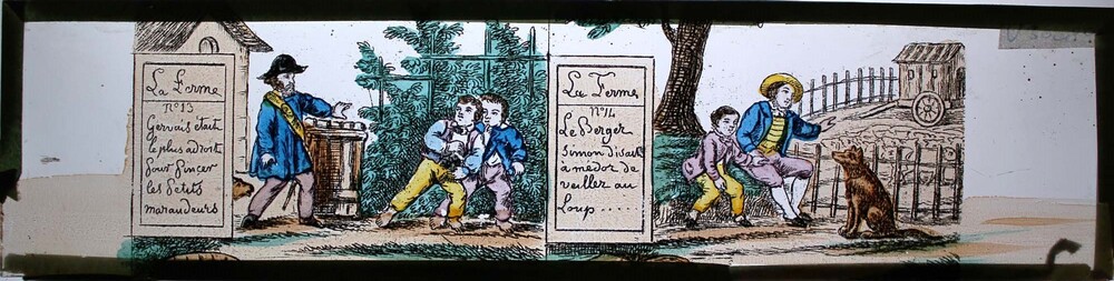 8 toverlantaarnplaten voorstellende het Franse landl...