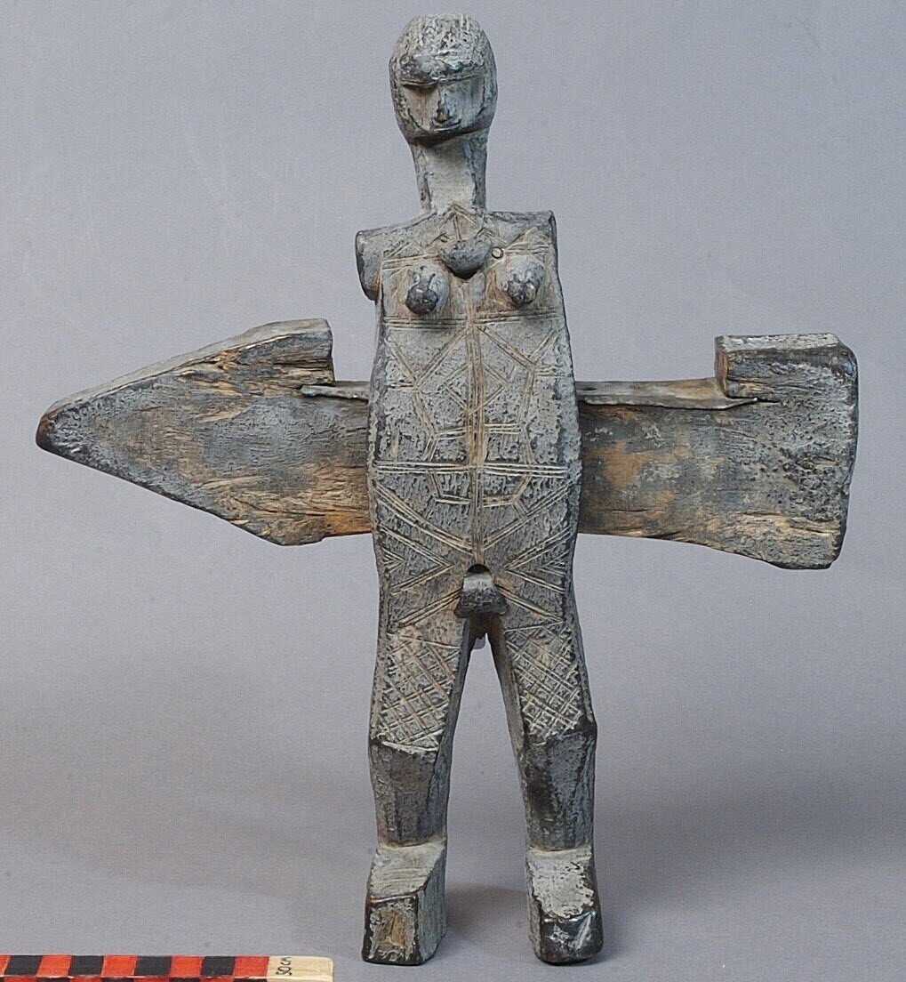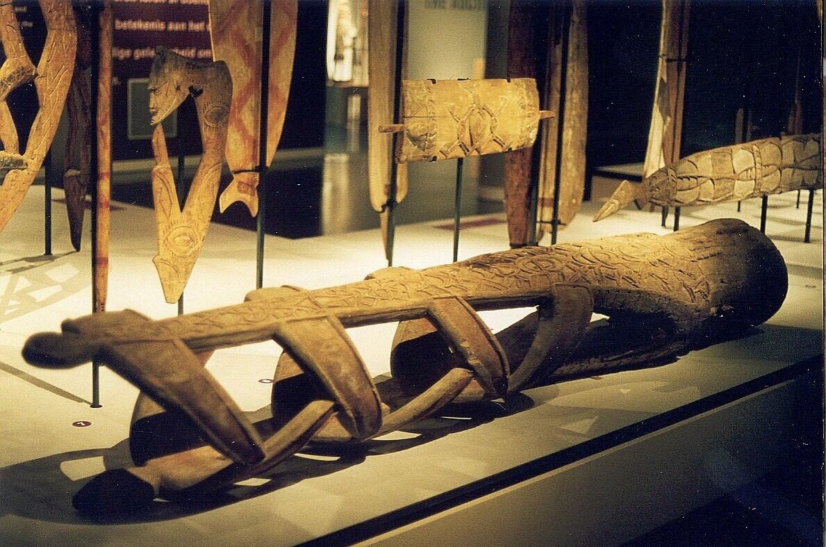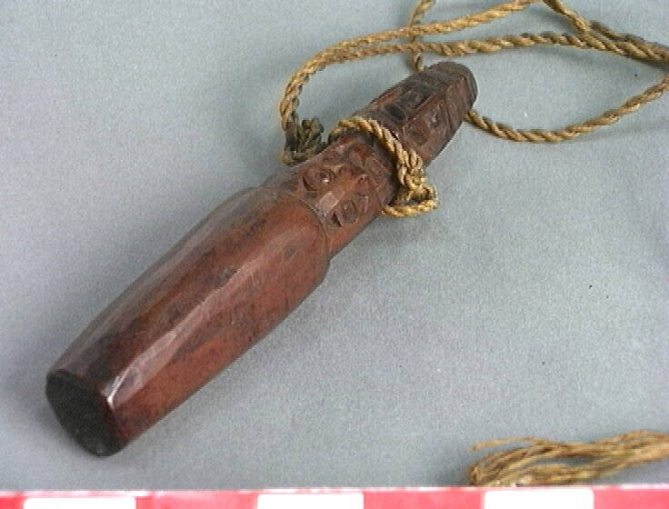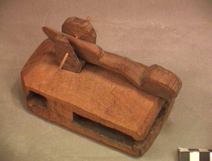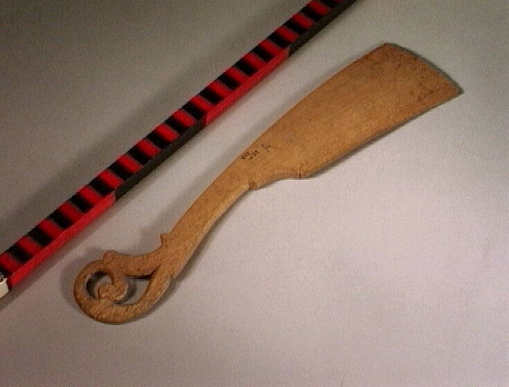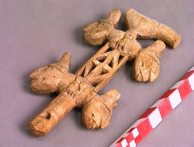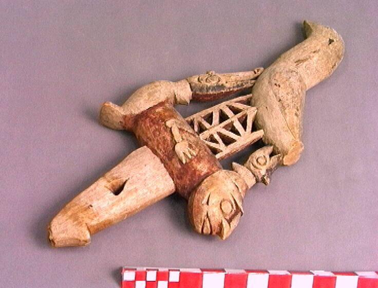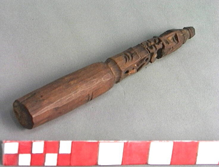 Uiteinde van een daknokbalk van een ceremonieel huis