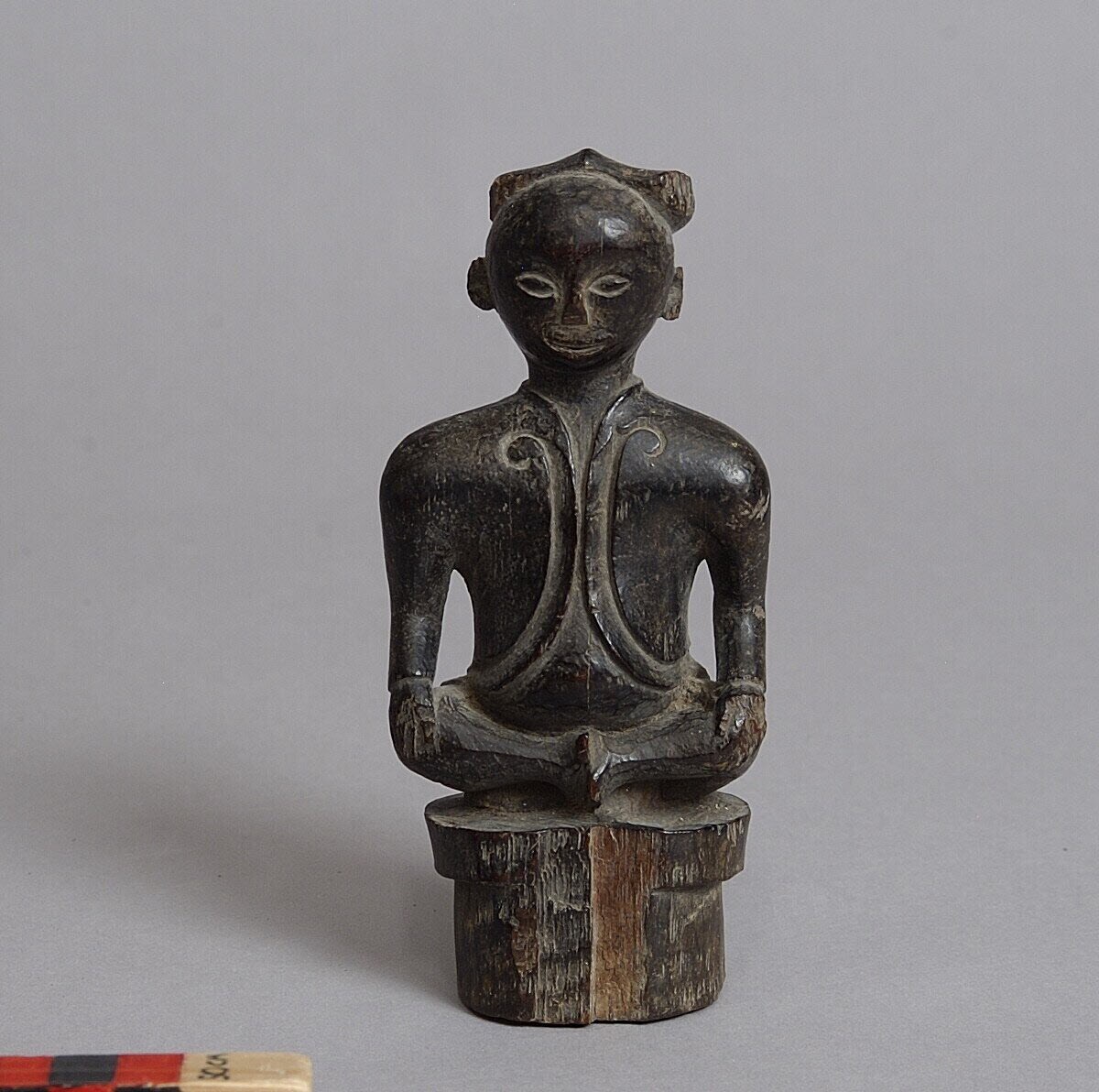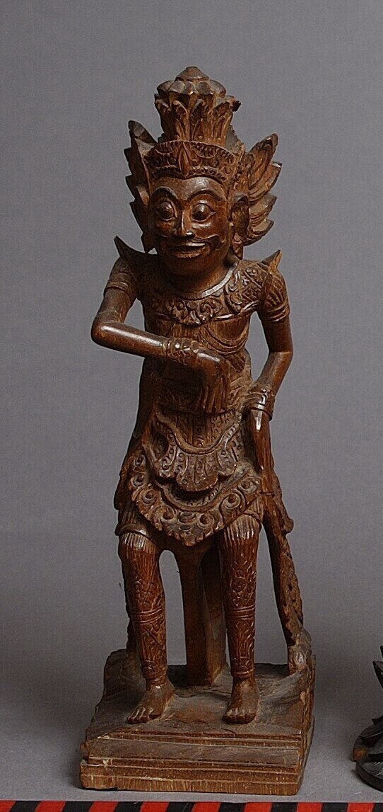 Een houten beeld van een vorst, waarschijnlijk Rama