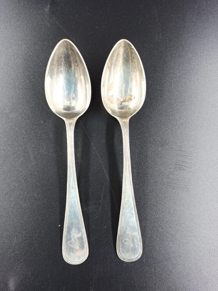 Een set van twee lepels met het wapen de familie Byl...