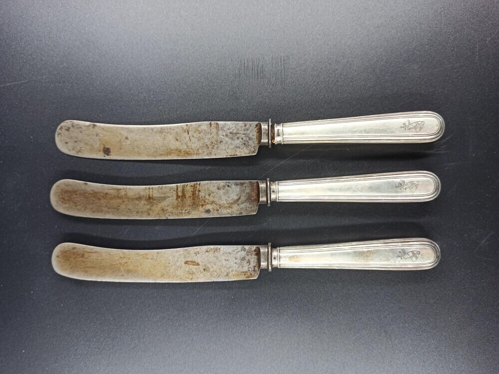 Een set van drie messen met het wapen de familie Byl...