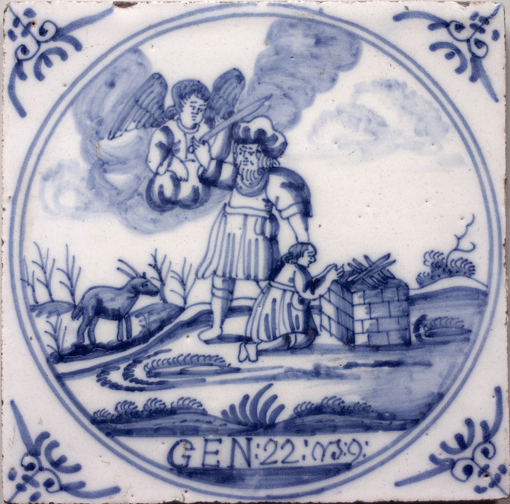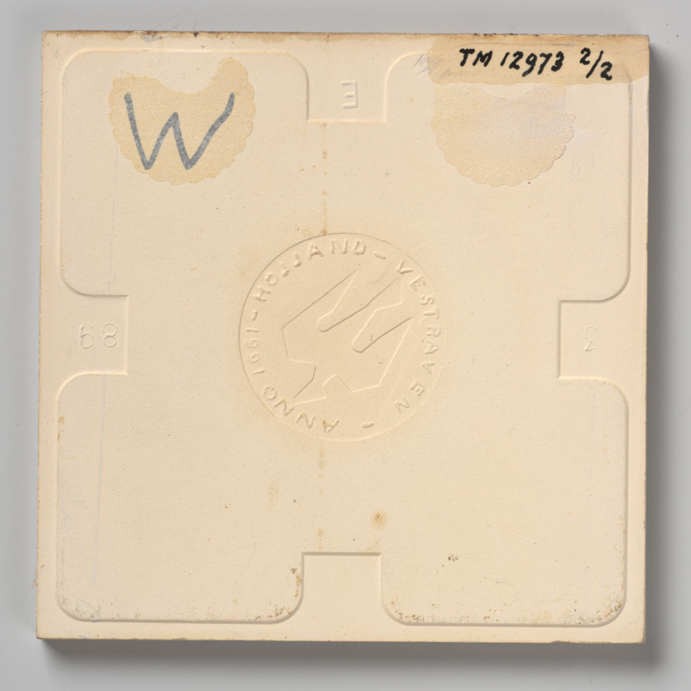 tegel van aardewerk met tinglazuur, voorstellende: h...