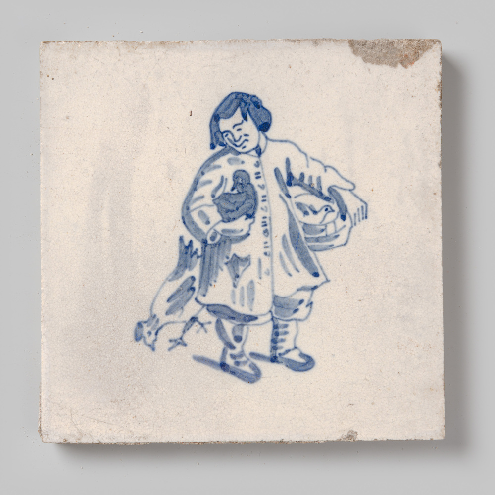 tegel van keramiek met tinglazuur, voorstellende: De...